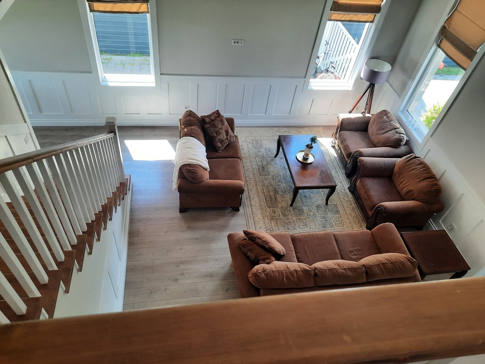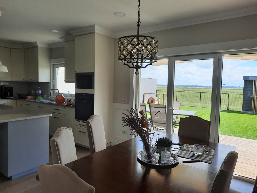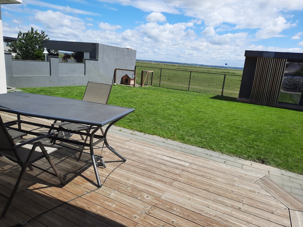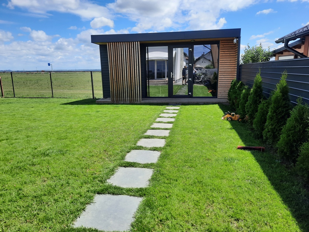 – parter: living, dining room, bucătărie, baie, laundry room, centrală, birou + cameră pentru unelte de 24 mp, garaj