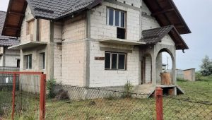 Casă nouă, zonă liniștită, construită din cărămidă Porotherm, amprentă 110 mp, acoperită cu tablă Lindab, gaz-curent-apă (centrală termică), fosă ecologică, compusă din parter: living+baie+birou+bucătărie+cameră utilități și mansardă: 3 dormitoare+baie+dressing, 400 mp teren aferent, preț 135.000 euro